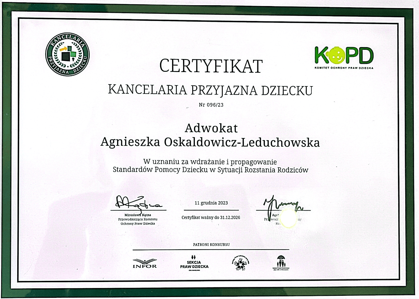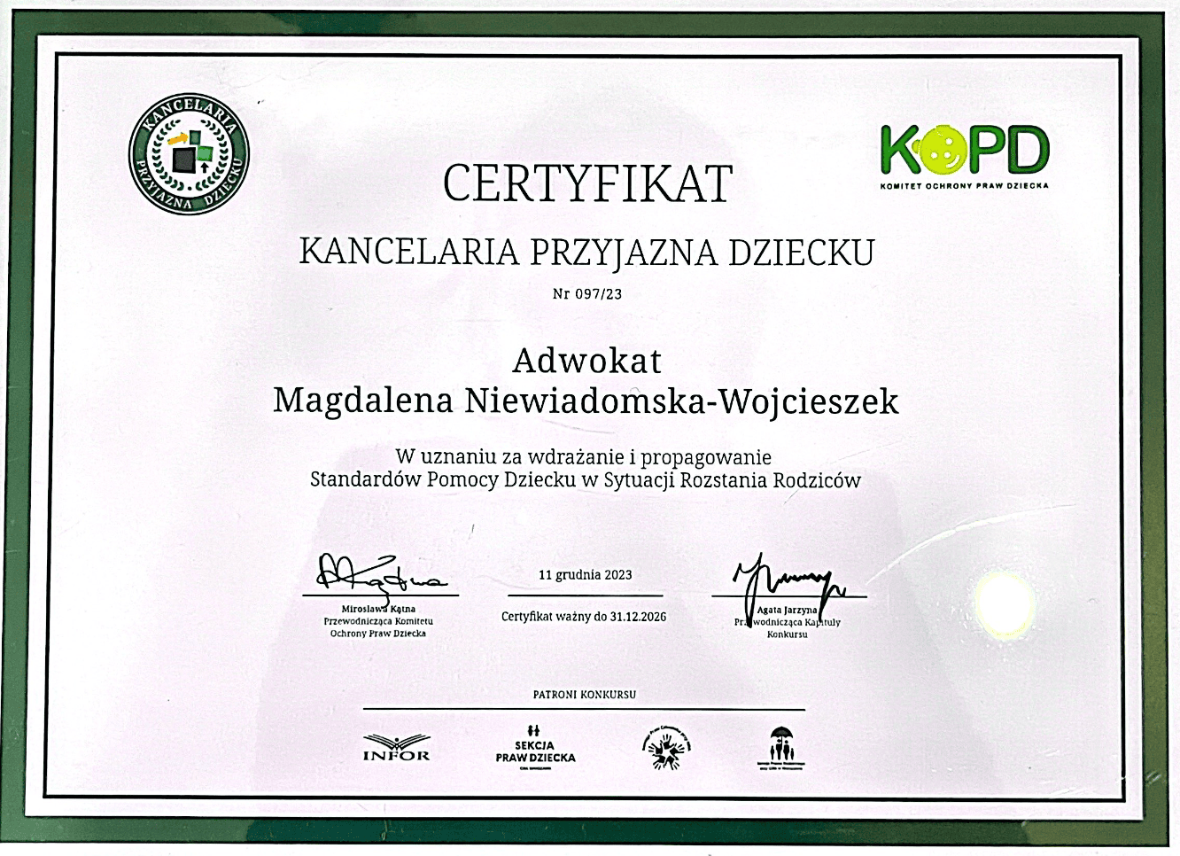 Misją naszej kancelarii jest niesienie pomocy w postępowaniu przed sądem jak i poza nim w zakresie prawa rodzinnego, z pełnym zaangażowaniem i ze szczególnym uwzględnieniem charakteru tych problemów. Jednocześnie zajmując się szeroko pojętym prawem rodzinnym do każdej sprawy podchodzimy z odpowiednią wrażliwością i empatią.